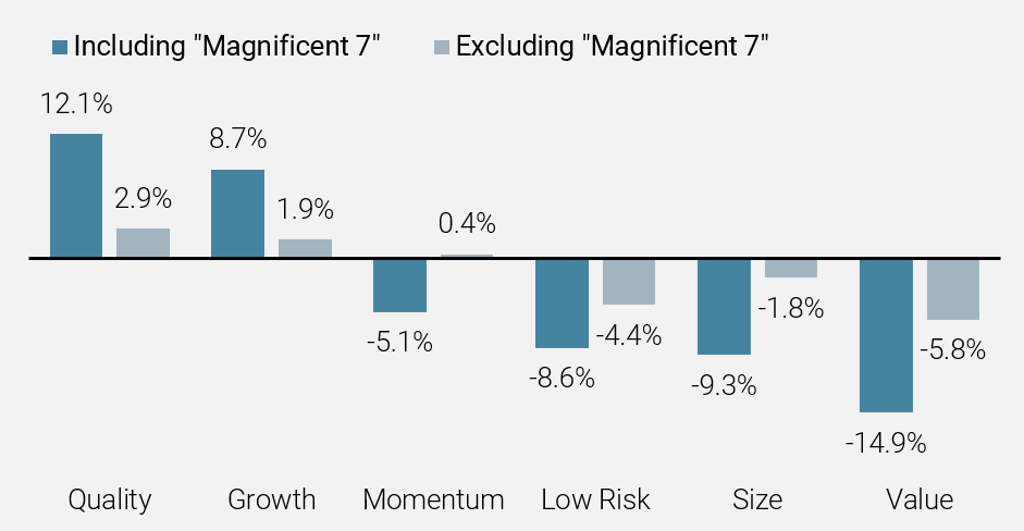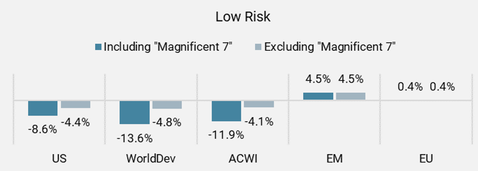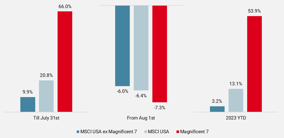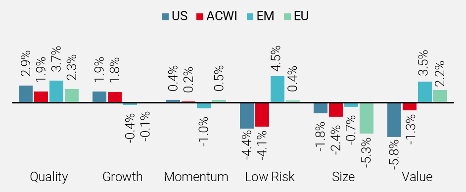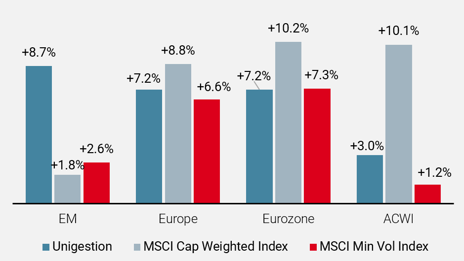 Nonetheless, a regime where interest rates stabilise at a high level is usually favourable to our strategies as high interest rates penalise the valuation of high growth companies (given the value of their future earnings is strongly diminished by a high discount rate). Companies which are by nature more defensive, with less uncertainty around their earnings growth, are becoming very attractive for investors as visibility on the true value of their earnings is much greater.
