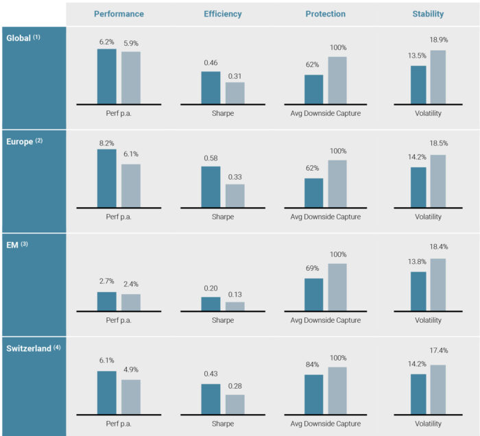 Investors shall conduct their own analysis of the risks (including any legal, regulatory, tax or other consequences) associated with an investment and should seek independent professional advice. Some of the investment strategies or financial instruments described or alluded to herein may be construed as high risk and not readily realisable investments, and may experience substantial & sudden losses including total loss of investment. These are not suitable for all types of investors. Unigestion has the ability in its sole discretion to change the strategies described herein.